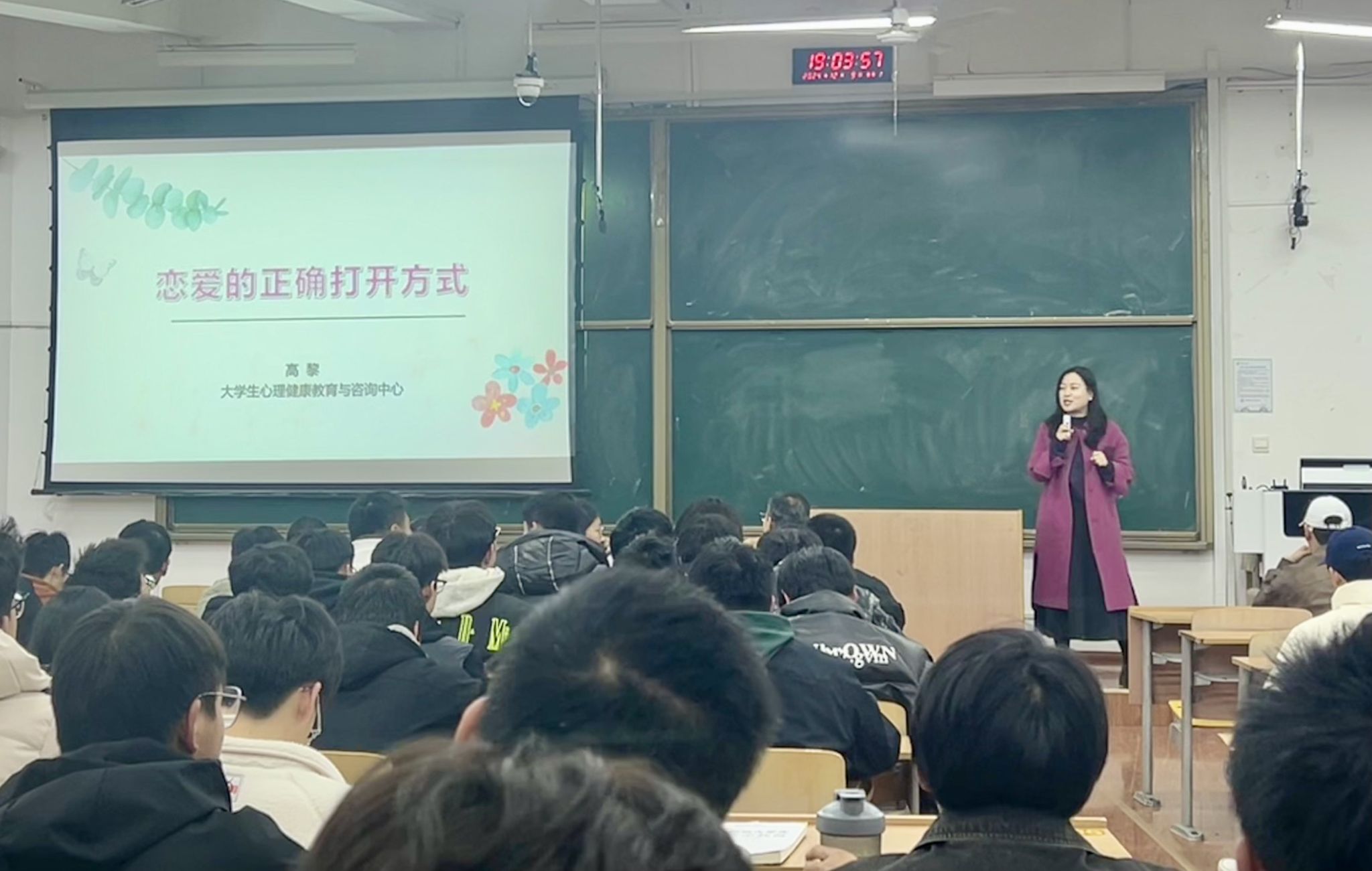 高黎老师以《恋爱的正确打开方式》为主题,从老员工恋爱观调查数据分析、理解爱情、老员工常见情感困扰、恋爱的正确打开方式等方面,通过师生互动、多重角度、多个事例、多种方式的讲解方式让同学们了解了什么是正确的爱情观、如何树立正确的恋爱价值观。报告会在轻松愉悦的氛围中进行,让同学们再次感受到了心理健康教育带给大家的快乐,同时也从心理育人的角度为同学们的生涯规划提供了一些启发和思考,帮助同学们更好找到发挥自我潜能的路径。